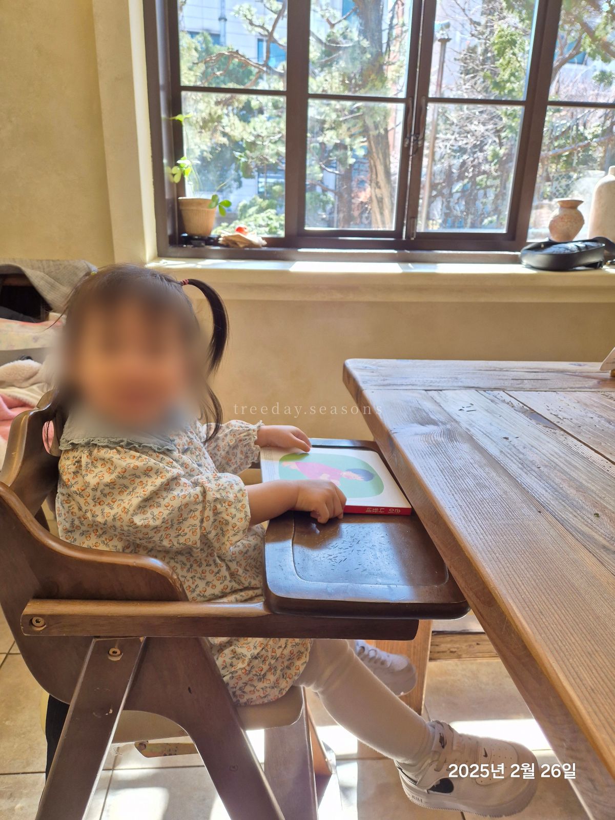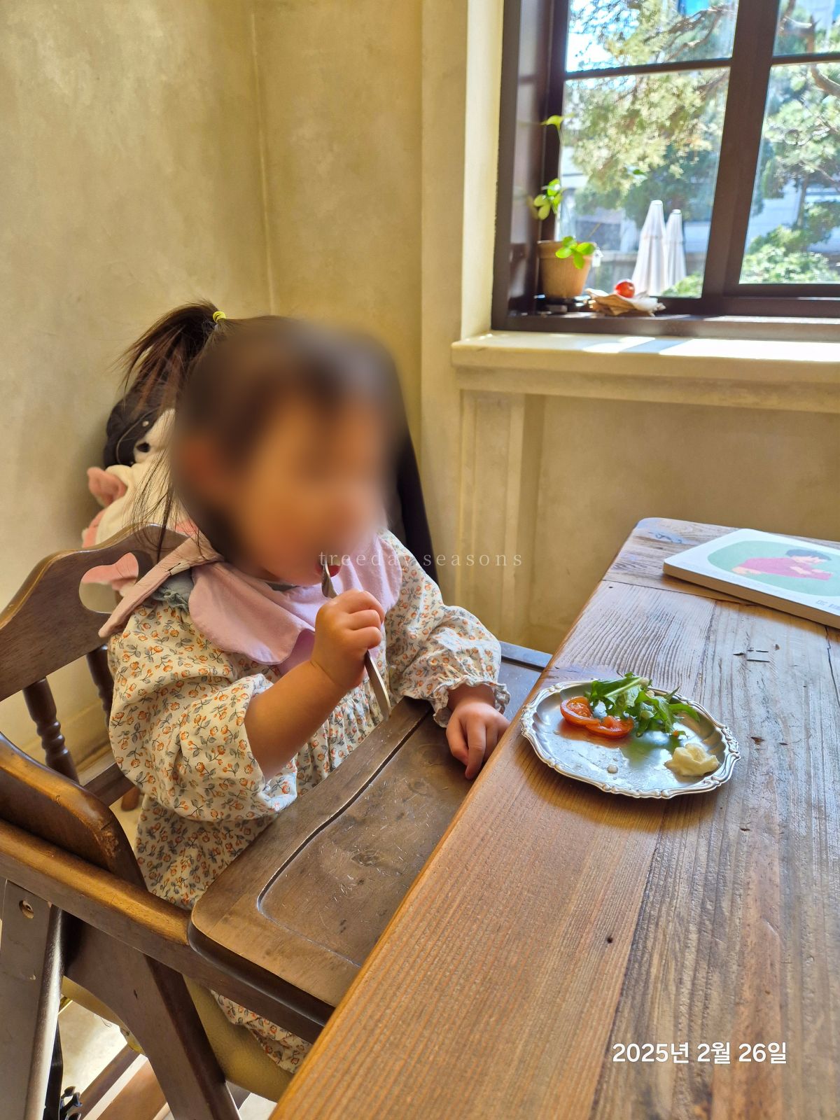 우리 동네는 영유아가 많아 온마을이 예스 키즈존인데, 서울 도심 한복판에 예쁘고 핫한 브런치 카페에 둥이들 데리고 가려니 민폐 끼칠까 걱정스러웠다. 자리 안내받으면서도 괜한 도전이었나 내심 긴장됐는데, 아기들이 있다고 하니 단체석을 내주셨고 아기의자, 아기식기도 준비해주셨다. 배려 덕분에 아이들과 마음 편히 식사할 수 있었고, 심지어 아기식기는 예쁘기까지 했다. (너무 감사합니다!!!)