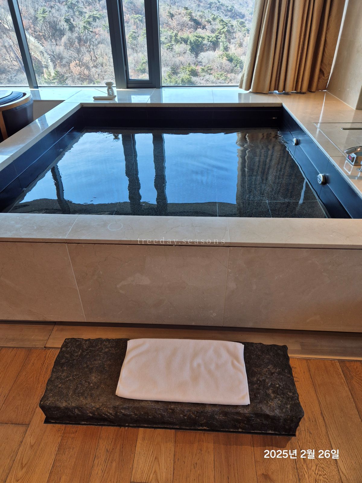 어디로 갈까 고민하면서 물놀이는 하고 싶지만 감기가 걱정되었기에 방 안에 수영장이 있는 반얀트리 서울로 결정했다.