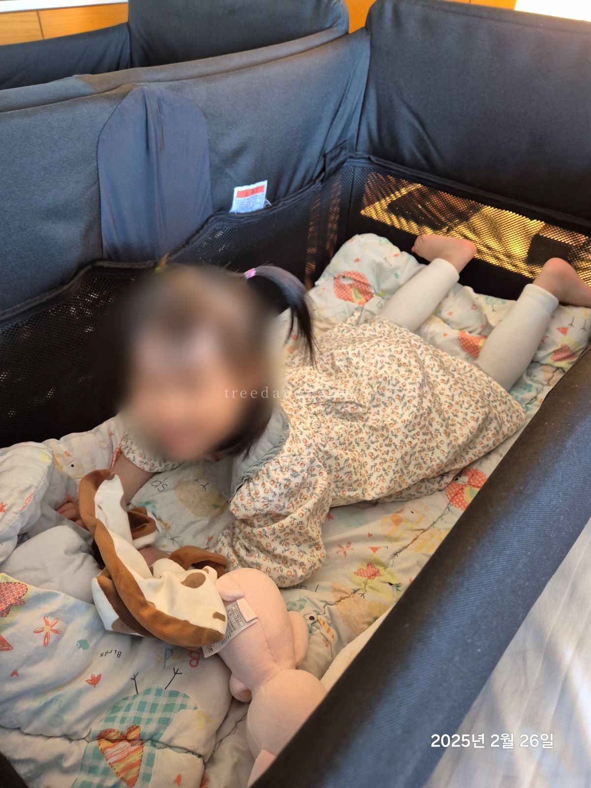 딱 23개월 평균키의 아이들인데 눕히니 다리를 쭉 펴기엔 좁았다. 이거 두 돌은 못씁니다요.