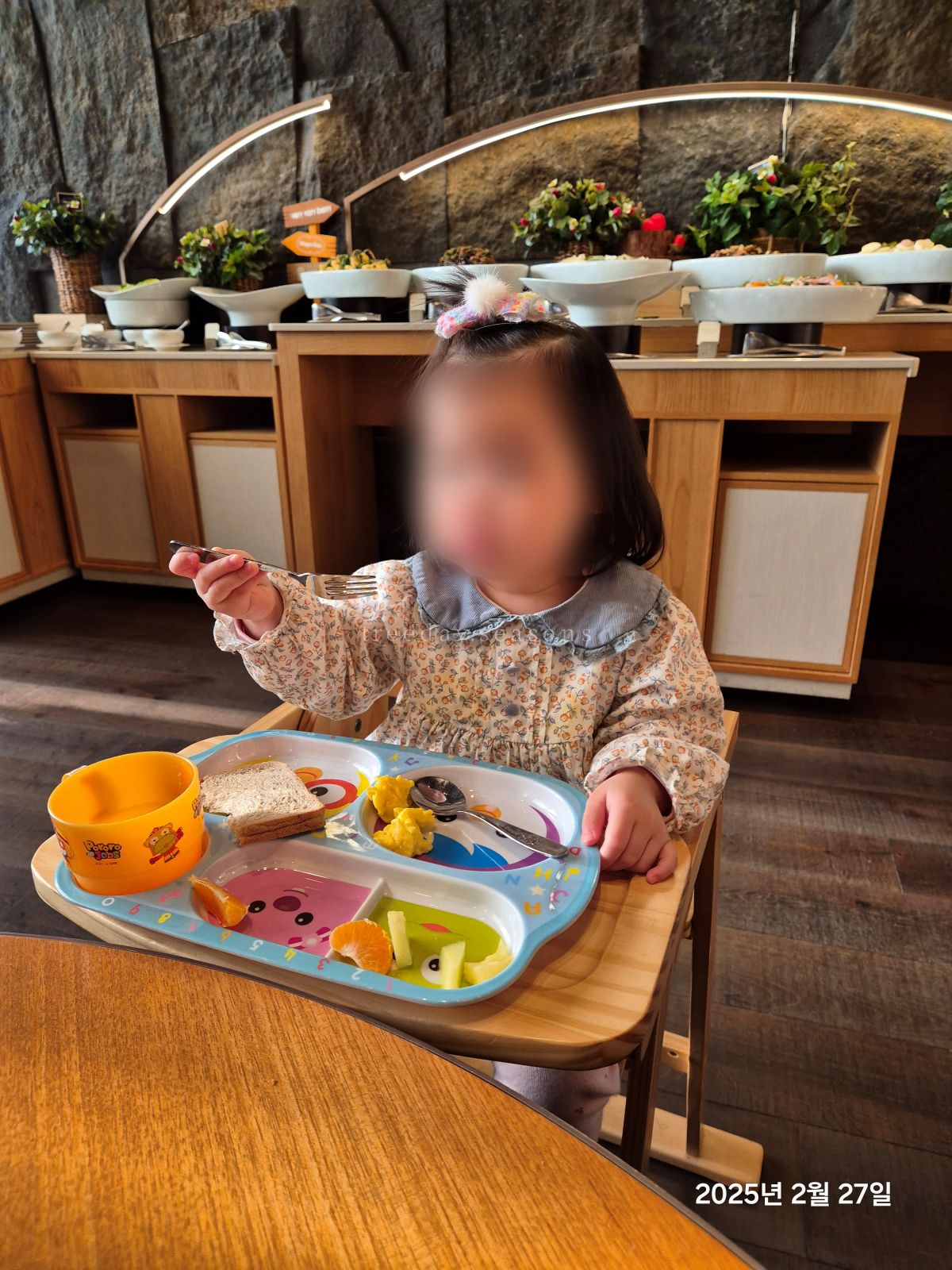 다음날 아침은 1층 그라넘 다이닝 라운지에서 조식을 먹었다. 36개월 미만의 아이들 식사는 무료다.
