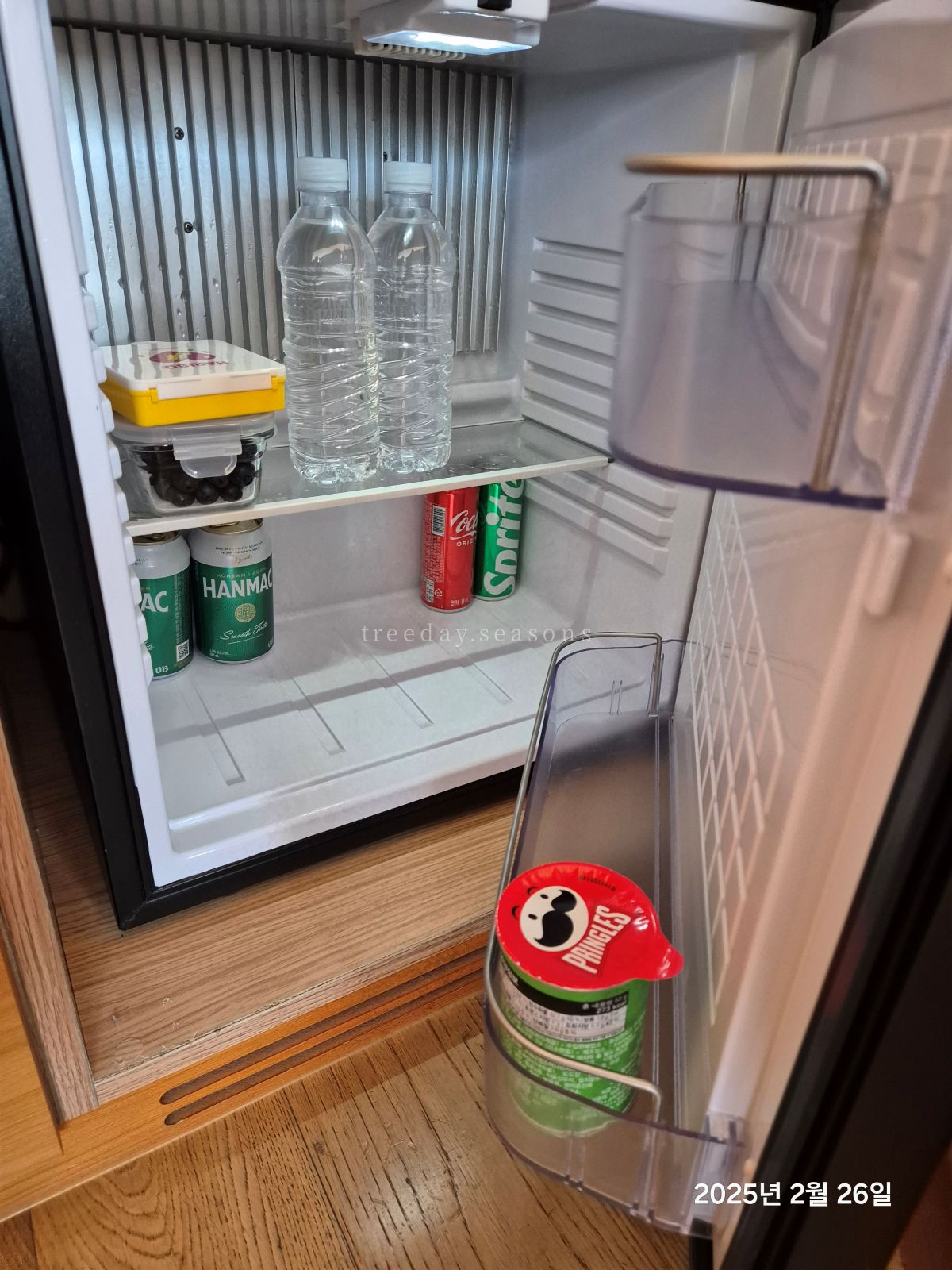 우리는 둥이들과 아이들 짐 챙기기에도 벅차서 마실 물조차 없었는데 미니바가 무료라 덕분에 남산야경을 보며 맥주도 한 잔 할 수 있었다.
